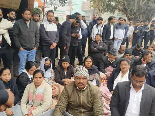 लोनी (Loni) तहसील में वकीलों का विरोध प्रदर्शन चौथे दिन भी जारी। वकील अभी भी कर रहे हैं नए तहसील में चैंबर और SDM के ट्रांसफर के मामले में कार्रवाई की मांग।
